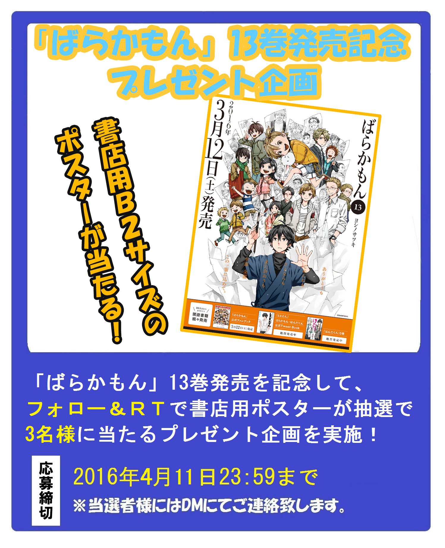 ヨシノサツキ公式 On Twitter ばらかもん最新13巻 公式ファンブック 絶賛発売中です 店舗別描き下ろし特典 ばらかもん100回記念フェアなどの詳しい情報はこちらでチェックを Https T Co 5utlzpk3dd 画像はガンガンに掲載中の記事です Https T Co Xyj1paou5u